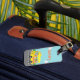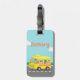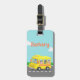Une étiquette mignonne de bagage d'enfants avec l'illustration d'un autobus scolaire jaune avec les enfants heureux qui sont excités pour aller à l'école ! Arrière - plan de ciel bleu et de nuages blancs. Personnalisez avec le nom de l'enfant pour faire à un morceau décoratif mignon pour le peu son sac d'école.