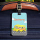 À Bagage Autobus scolaire jaune et étiquette heureuse de