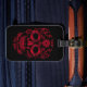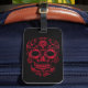 Image d'un crâne rouge avec un arrière - plan noir sur une étiquette de bagage