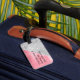 Marque de bagages chic faite en demi-parties scintillant argent et demi-feuille rose, avec une seule lettre monogramme, au milieu. Le verso de la balise contient du texte personnalisé. Personnalisez le monogramme et le texte d'une lettre, à l'avant et à l'arrière de la balise, pour répondre à vos besoins.