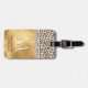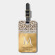 Marque à bagages de femme chic faite dans un arrière - plan à l'aspect feuille d'or, avec des graphiques d'un motif de fourrure léopard blanc et or, avec parties scintillant et bijoux, sur le devant. Personnalisez le champ monogramme et texte d'une lettre pour répondre à vos besoins. Une étiquette de bagage remarquable qui est difficile à manquer.