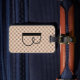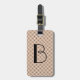 Étiquette mignonne de bagage de point de polka avec votre pois initial, noir et blanc sur le Taupe ; Personnalisez avec le nom et le dos d'information d'identification dessus