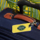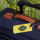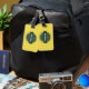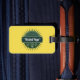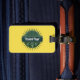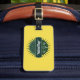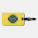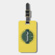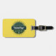 Arrière - plan jaune lumineux accentué par logo modifié la tonalité vert de pickleball. Vintage et rétro avec un regard moderne. Étiquette inconditionnelle de bagage de joueur de Pickleball ou étiquette d'identification de sac de vitesse. Caractéristiques de conception une palette de pickleball et deux pickleballs.