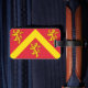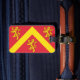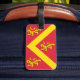 Bagage Tag avec design avec un drapeau du comté historique d'Anglesey, au Pays de Galles, Grande-Bretagne; drapeau rouge avec chevron jaune et trois lions; les bras attribués de Hwfa ap Cynddelw, l'insigne traditionnel du comté