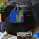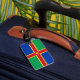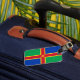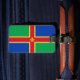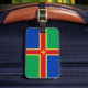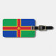 Bagage Tag avec design avec un drapeau du comté historique de Lincolnshire, en Angleterre, Grande-Bretagne; drapeau vert et bleu avec croix rouge et jaune et une fleur de Lis au centre