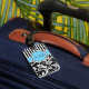 À Bagage Étiquette noire, blanche, bleue en rayures Damas