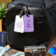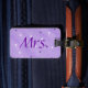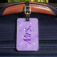 Peinture d'étoiles violettes et blanches sur un arrière - plan de lavande mélangé, avec Mme imprimée sur l'avant des étiquettes de bagages. Il y a un espace réservé pour le nom et l'adresse à l'arrière.