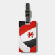 Cette étiquette de bagage à thème volleyball présente l'image réaliste d'un volleyball abstraitement surdimensionné qui a des panneaux rouges, noirs et blancs - personnalisez avec le nom du joueur et le monogramme sur le devant, l'adresse et le numéro de téléphone sur le dos - par katz_d_zynes