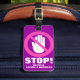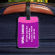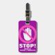 Aide à trouver et garder d'autres hors de votre sac à bagages avec ce graphique violet brillant, rose et blanc, STOP! mains de symbole d'avertissement étiquette bagage. Le design de Girlie est idéal pour les filles et les dames. Lit la propriété STOP de, puis ajoutez votre nom sur l'avant et le nom complet et l'adresse à l'envers. Parfait pour les vacances à l'aéroport et les voyages en autocar. Rend votre sac plus facile à trouver. Customisez le verso de cette balise avec vos nom et adresse. Conçu exclusivement par Sarah Trett.