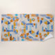 A towel made of watercolor with geometric shapes in the base colors, orange and blue, painted in an intuitive and coordinated manner to leave harmonic spaces between the formats, making the work unique and pleasant to the eyes