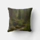 Beautiful throw pillow features nature scene of a stream running through a lush mountain forest. Image created using AI software