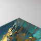 A beautiful angelic canvas wall art with a beautiful angel with a turquoise marble background and a gold halo in an impasto style.