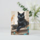 A beautiful longhaired black cat postcard