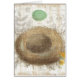 © Moira Hershey / Wild Apple. A bird's nest made of brown twigs and branches with a green egg. The white background of the image has sketches of plants on it.