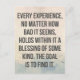 "Every experience, no matter how bad it seems, holds within it a blessing of some kind. The goal is to find it" quote.