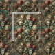 A snarling beast and a sorrowful mask peer from within a wild bouquet of blood-toned roses and ghostly florals. Framed in baroque scrollwork and tangled vines, this gothic floral tapestry stages a moody production of beauty and unease.