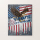 A bold, distressed illustration of an eagle jigsaw puzzle