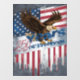 A bold, distressed illustration of a soaring bald eagle combined with vintage American symbolism. The worn textures and retro style evoke strength, freedom, and resilience, inspired by classic poster art.