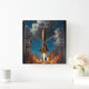 A Breathtaking Retro Fusion Rocket Launch Square Wall Clock