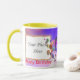 A Birthday photo mug with a bunch of colourful balloons flying up into the sky frame, plus the customizable text "Happy Birthday" on the front and back. Add a photo to the front and a different photo to the back, or have both the same.