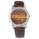 The watch looks really great! Very sharp and well done. The leather band is really nice, though for a man's watch I think it should be longer. Unfortunately, it isn't big enough for my husband's wrist but I will get a replacement because he is very excited to wear it!