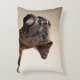 A Brindle Boxer puppy looking up curiously. Decorative Pillow