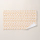 This elegant brown and orange rug showcases a striking repeating pattern motif that is perfectly complemented by the vibrant bright orange wrapping paper featuring a similar design. Add a touch of sophistication to your living space with this beautifully coordinated home decor piece.
