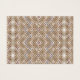 A brown rug displaying a symmetrical design featur