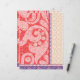 • Background: A rich red colour with an elaborate and dense pattern, adding texture and depth.