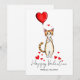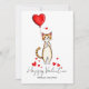 A cute orange cat stands happily while holding a red heart-shaped balloon. Surrounded by floating hearts, the illustration creates a warm and loving atmosphere, symbolizing affection, joy, and sweetness.