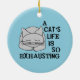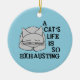 A cat's life is so exhausting text with the image of a sleeping grey cat, with a smile on it's face, is a funny design for cat lovers.