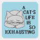 A cat's life is so exhausting text with the image of a sleeping grey cat, with a smile on it's face, is a funny design for cat lovers.