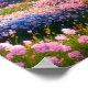 A quiet and captivating valley spreads before your eyes, filled with a dazzling display of bright flowers and graceful cherry blossom trees. The valley emits a calm environment that invites you to immerse yourself in its natural grandeur. The peaks of towering mountains reach towards the sky, creating a stunning backdrop.