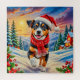 Celebrate the joy of the holiday season with a whimsical and colourful puzzle featuring a cheerful dog donning a festive Santa hat and scarf. Surrounded by a vibrant, snowy landscape filled with exaggerated, cartoonish elements, this puzzle captures the spirit of winter wonder and delight. The background dances with wavy clouds in cheerful hues, creating a joyful atmosphere that spreads festive cheer. Perfect for sharing smiles and holiday wishes with loved ones!