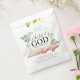 Send guests home with a sweet reminder of this special celebration! This charming favour bag features soft light greens, gentle red accents, and an open Bible, beautifully complementing a faith-filled baby shower. Perfect for holding small treats, candles, or keepsakes, it’s a thoughtful way to share gratitude and blessings with loved ones.