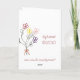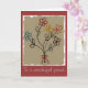 Charming birthday card with my original mixed media floral design with a child-like painting of five simple, five-petal flowers - each in a different color: one aqua blue, one deep red, one golden yellow one orange and one violet. Each flower has a stem represented by a single line with two leaves and the bouquet is tied up with a little red yarn bow. The background of the painting has rough edges and a brown, aged appearance making it feel as if it might have been painted long ago. I've created this fully customizable card as a birthday card, but it would also be appropriate for many different occasions or just for whenever you want to send someone a little smile.