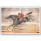 Vintage print of a circus performer riding a vaulting horse bareback, circa 1873.