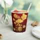 Golden Auspicious clouds in front and in back : golden Tiger paper-cut, golden Year of the Tiger, golden greeting in Chinese and large golden 2022 written in calligraphy style + Tiger ideogram (font). All elements can be moved you as you wish. Design on paper cup on gradient dark red background. Matching greeting card, holidays postcard, craft supplies, party supplies and more... Perfect for a traditional and modern Chinese New Year of the Tiger 2022.