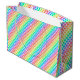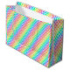 A colorful gift bag with a vibrant rainbow
