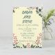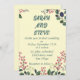 A colourful floral invitation with a botanical and tropical flowers and plants.