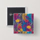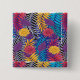 a colourful flower and leaves pattern on a blue ba 2 inch square button