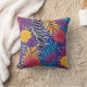 a colourful flower and leaves pattern on a blue ba throw pillow