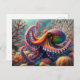 A vibrant octopus glides gracefully through a clear blue ocean, displaying a mesmerizing array of colours across its skin. Its tentacles, adorned with intricate patterns of reds, purples, blues, and greens, twist and curl in elegant motions, reflecting light in shimmering hues. Each arm is covered with rows of delicate suckers, adding texture and detail to its dynamic form. The octopus's expressive eyes, full of curiosity and intelligence, stand out against its colourful body. The scene captures the octopus in all its beauty and fluidity, creating a captivating display of oceanic life and vivid colour.