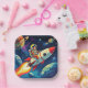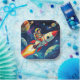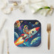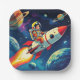 A Comic Book style Boy on a Rocket in Space Paper Plate