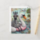 A Cool Zebra on Vacation in a Floating Swan Postcard