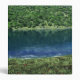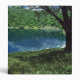 Un endroit tranquille pour se reposer, sous un arbre sur la rive gazonnée d'un lac bleu profond, en regardant les reflets des nuages et des arbres dans l'eau ondulante. Une scène 3D créée en Vue.