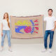 Coyote Wolf Colourful Southwestern Design Desert Custom Personalized Throw Blanket. Background colour can be customized. Coyote - or is it a wolf - sitting next to a desert cactus and howling at the moon. This art design is done in my slices of colour style. The critter is blue, the cactus is yellows and greens and the moon is tones of orange and red. Whether you like southwest design or just feel like howling at the moon...