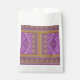 • Middle Section: This broad purple band features detailed paisley and floral designs. It is bordered by thin stripes and smaller bands of floral patterns.