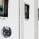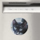 A curious cat behind a door magnet