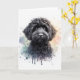 A cute pic of a black cockapoo with a watercolour background. The inside has been left blank so that you can add your own wording